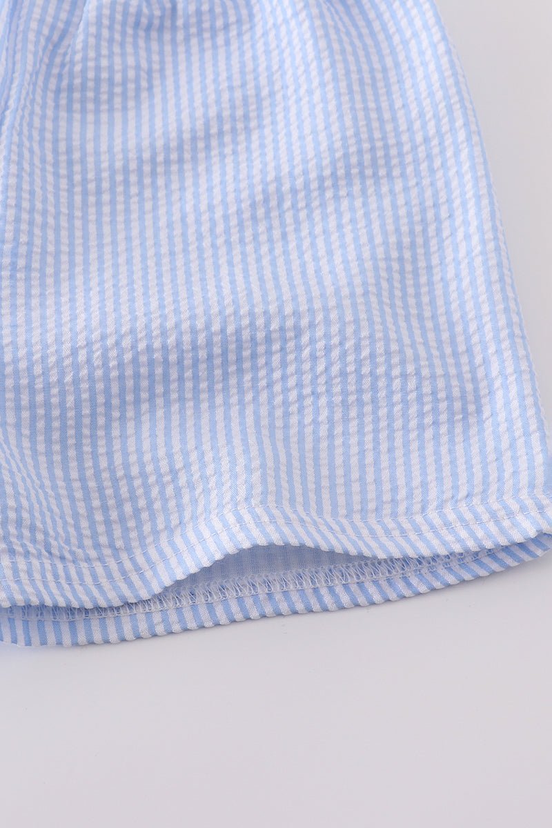Transform your little one into a fashion statement with our Blue cross embroider smocked set! Embrace the cuteness overload as the delicate cross embroidery and smocked design add a touch of elegance and playfulness. Perfect for any occasion, this set will surely turn heads.