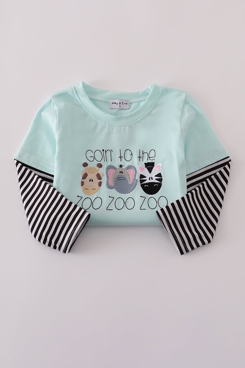 Add a splash of fun to your wardrobe with the Blue GOIN TO THE ZOO embroidery top. Its vibrant blue fabric and charming zoo-themed embroidery bring playful energy to any outfit, perfect for casual days or lively outings. Comfortable and eye-catching, this top invites smiles and sparks conversations wherever you go.